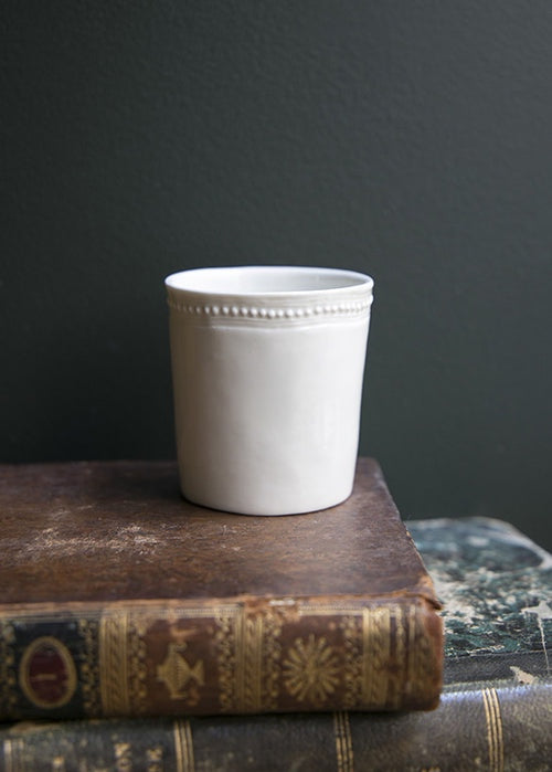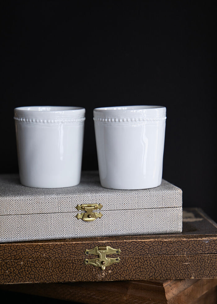 Une fine rangée de perles orne chacune des pièces de l'élégante collection Louis XVI, dont le motif est inspiré par les ornements décoratifs du XVIIIe siècle. Cette timbale à café avec son motif discret et élégant se mariera à ravir avec tout.