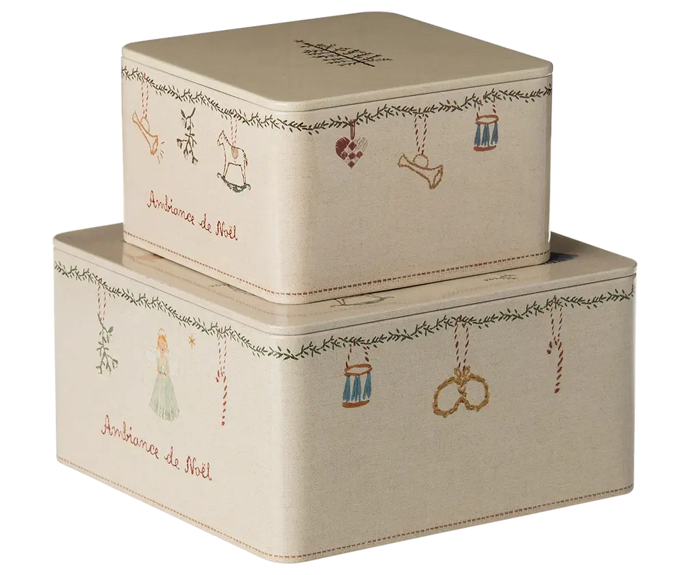 Un coffret de deux boîtes en métal décoré d'un charmant imprimé floral. La plus grande boîte est d'un bleu tendre et la plus petite d'un rose ancien. Vous pouvez y ranger vos biscuits ou bonbons préférés ou les utiliser comme boîte de rangement.