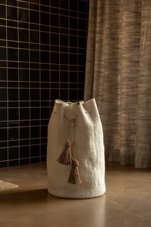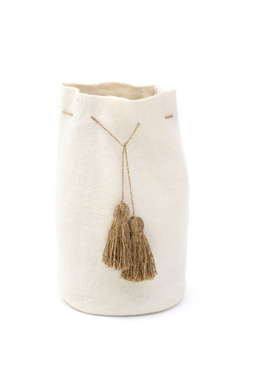 Le PANIER HAUT A POMPONS concilie le beau et le pratique ! Le façonnage du feutre ainsi que la réalisation de son lien tressé et orné de pompons en chanvre, révèlent le magnifique travail de nos artisans népalais. Ce grand panier de rangement en feutre, par son élégance, trouvera sa place dans n'importe quelle pièce de la maison.
