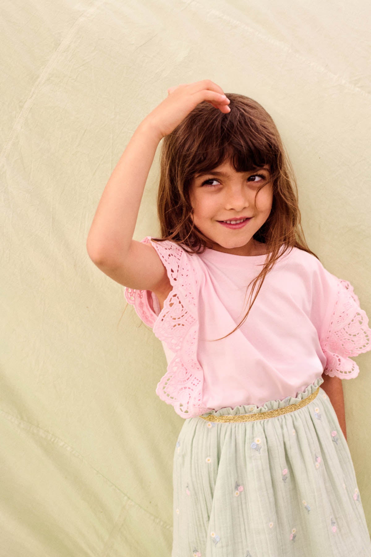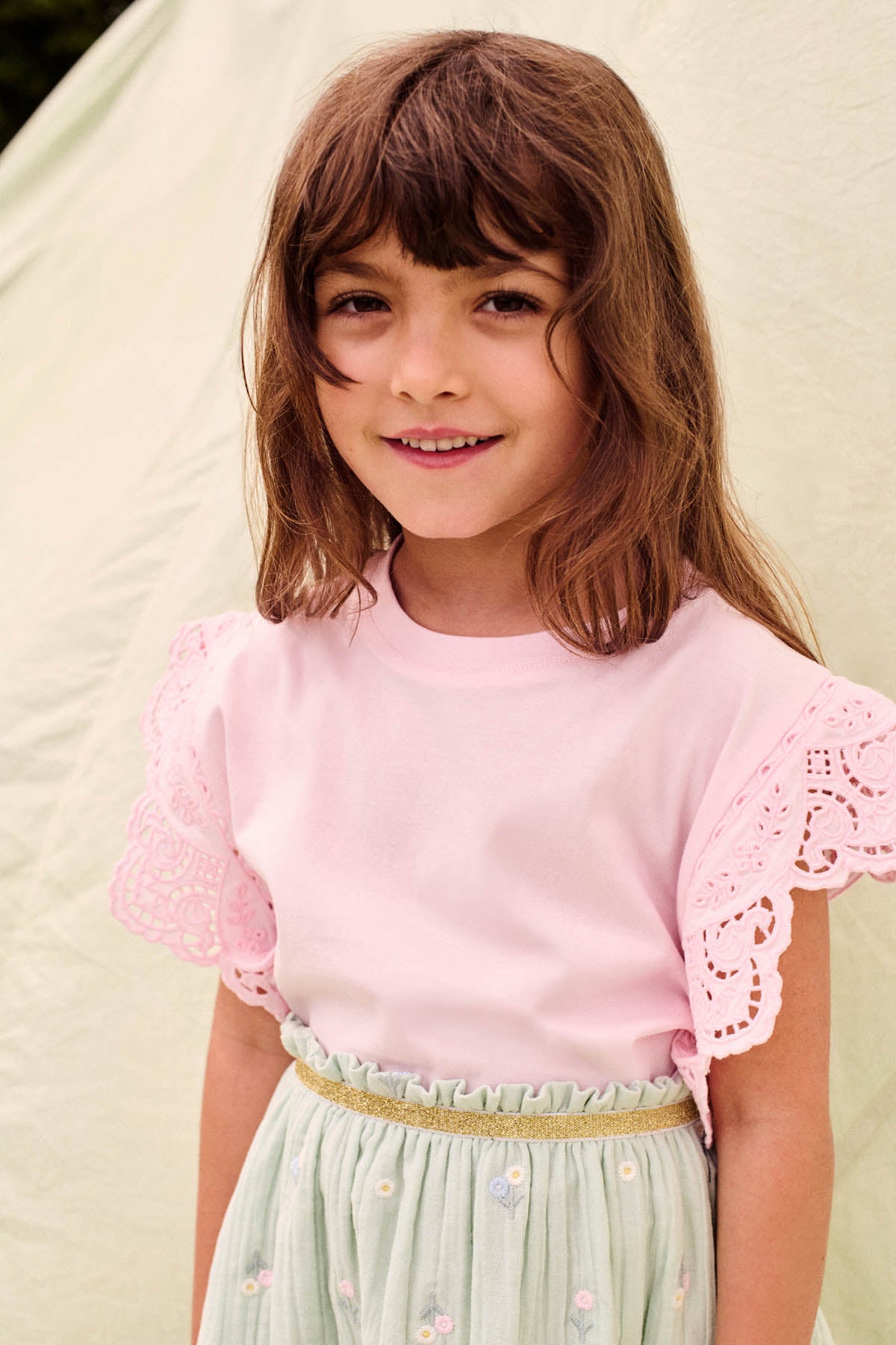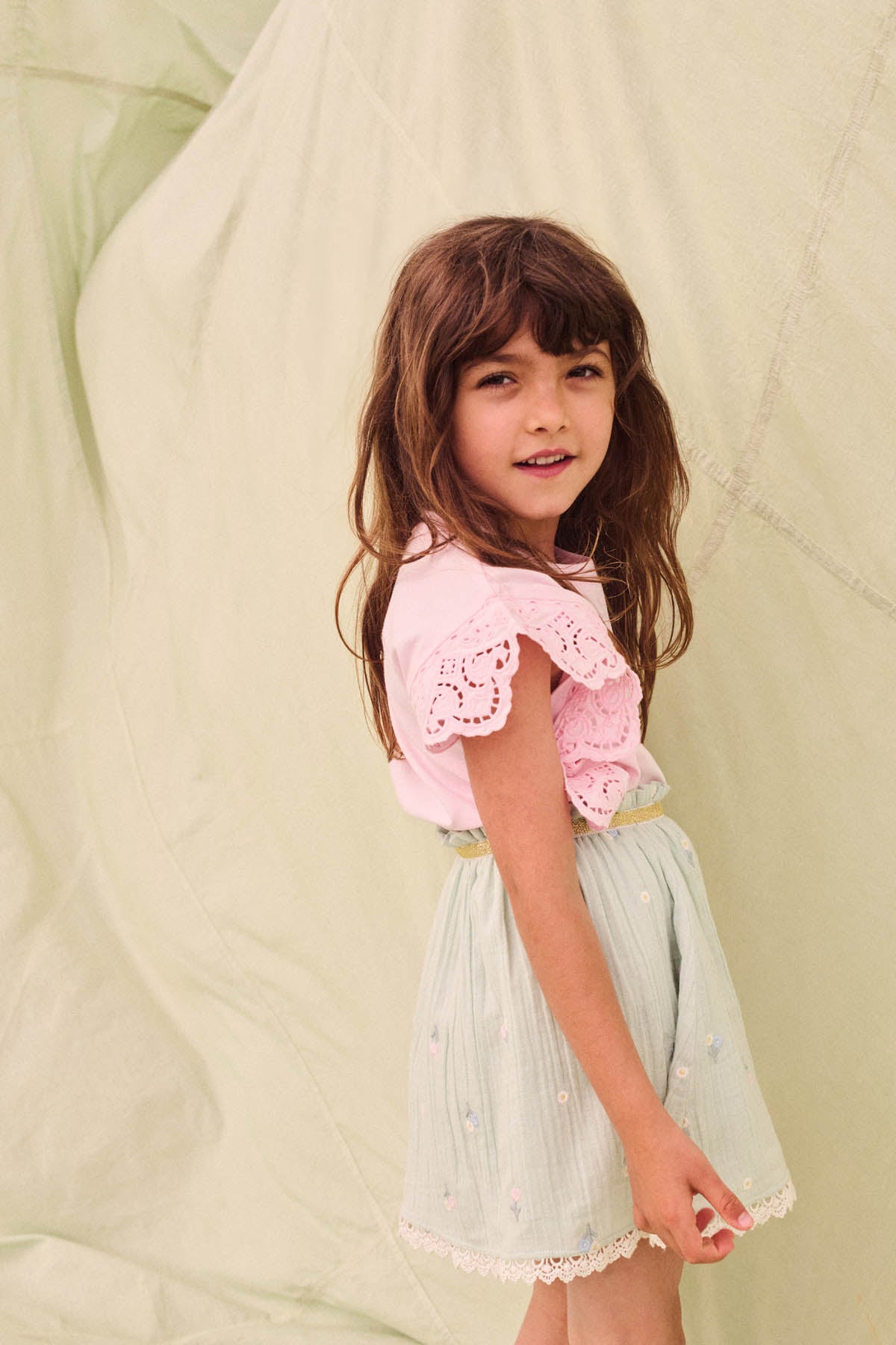 - Jupe en double gaze de coton avec broderies fleuries en all-over