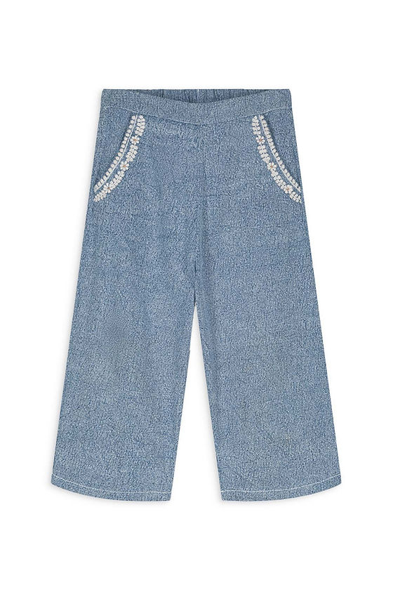 - Pantalon en denim.Coupe large et légèrement évasée.