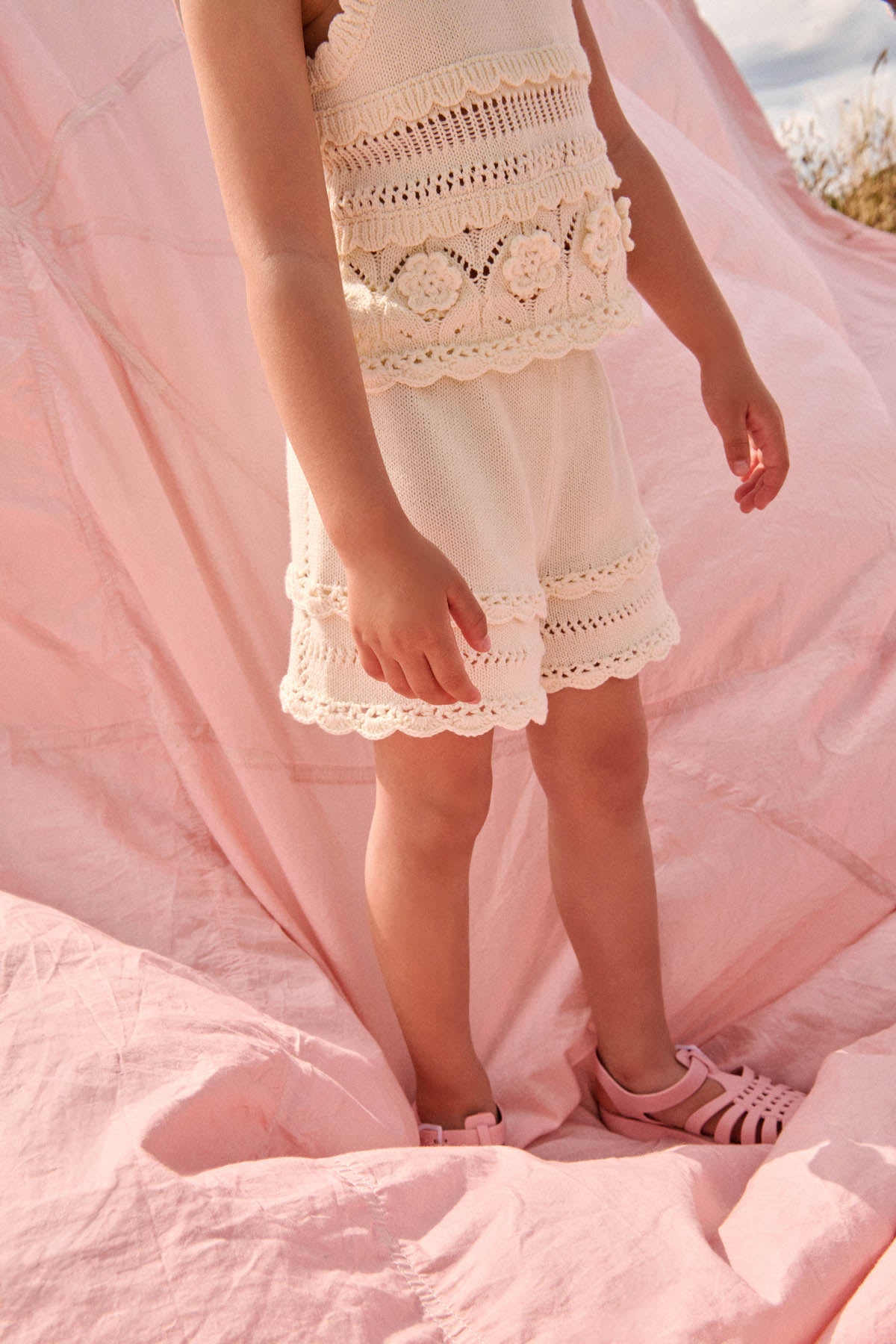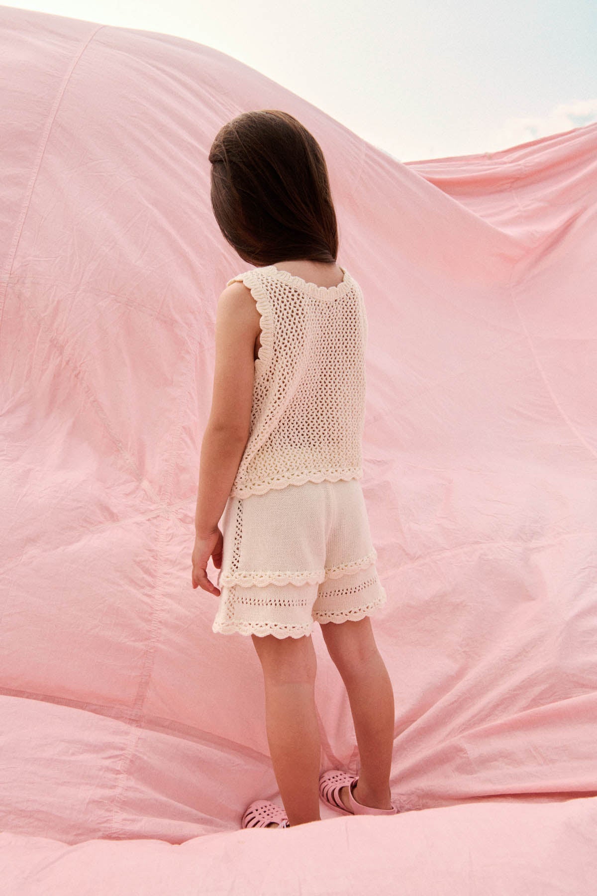 - Détails festonnés crochetés à la main sur le devant, au dos et en bas du vêtement