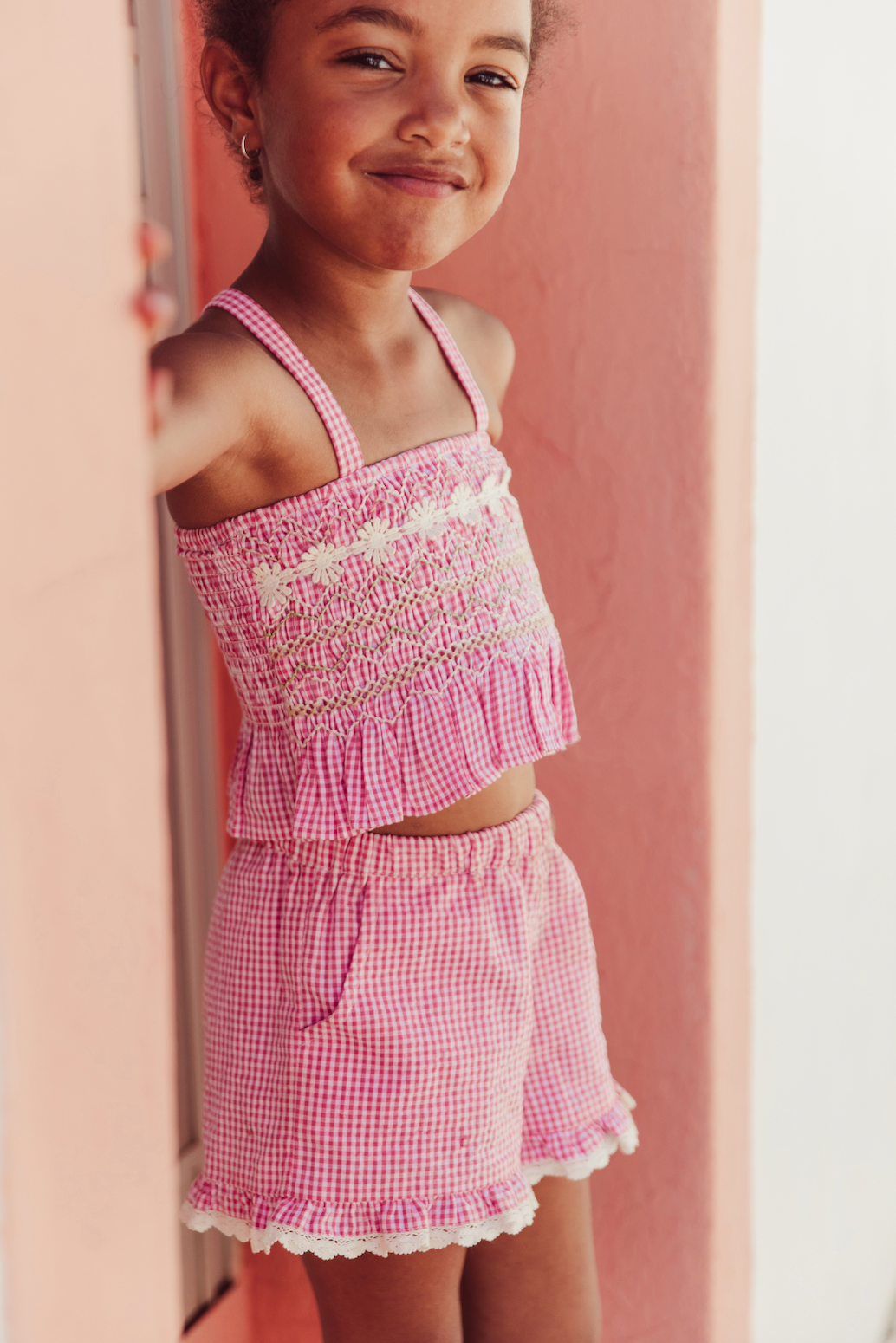 - Crop top en vichy effet gaufré.