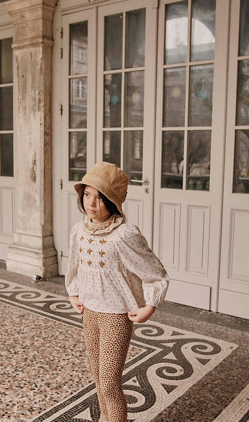 Mais qui s'est roulé sur le fond beige de ce legging en jersey de coton biologique ? Un léopard bien sûr et il y a laissé les ocelles de son pelage pour intimider les copines peut-être. Ce que j'aime dans ce legging ? Sa forme qui se porte comme un pantalon avec un tee shirt, une blouse et un sweatshirt ou un lainage dès que les journées fraîchissent mais qui peut aussi se transformer en collant avec une jupette ou une robe quand les jours sont plus froids. J'apprécie aussi la matière aussi douce que la peau des bébés. Avec sa ceinture élastiquée, sa matière biologique toute douce, ce legging est un basique original qui complète toutes les tenues.
