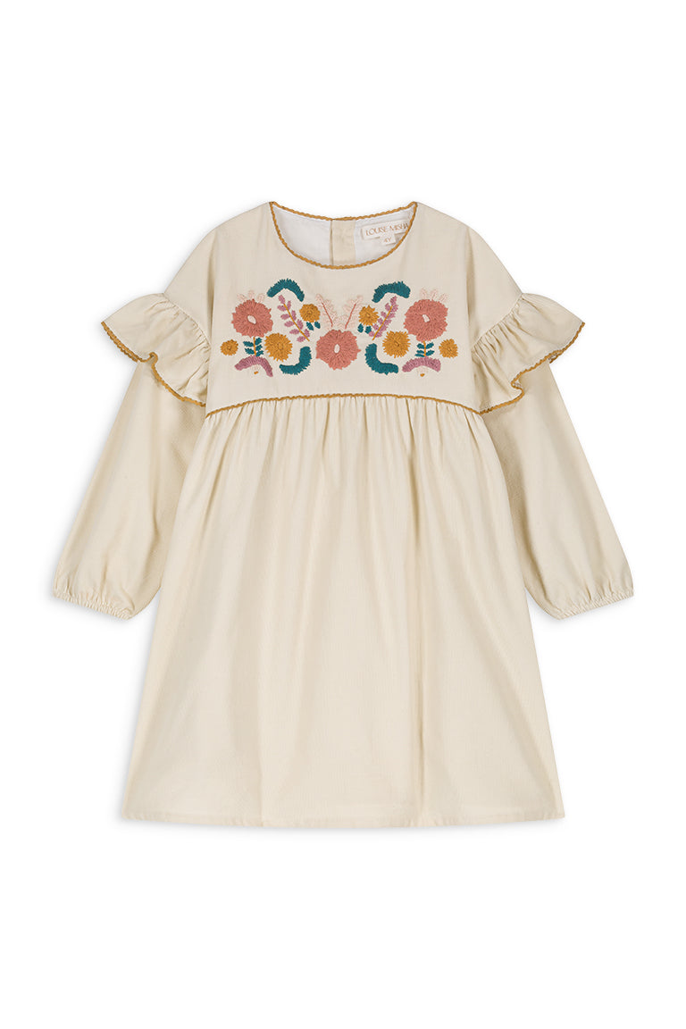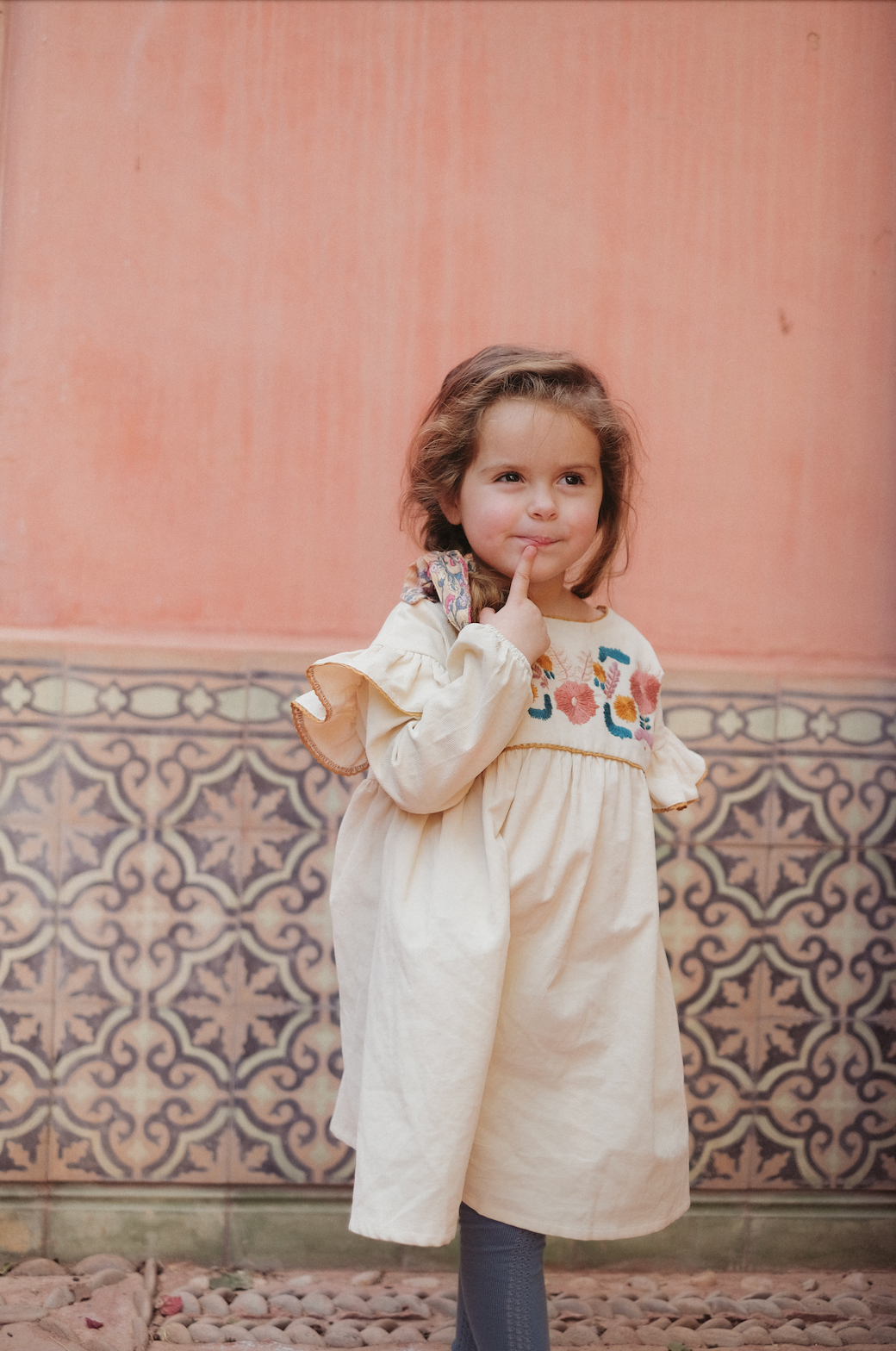 Sur la première photo, Gabrielle mesure 104 cm et porte une taille 4 ans.