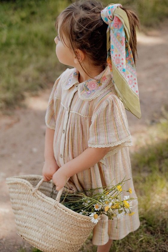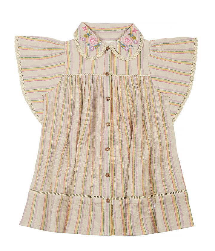 - Robe en coton rayé.