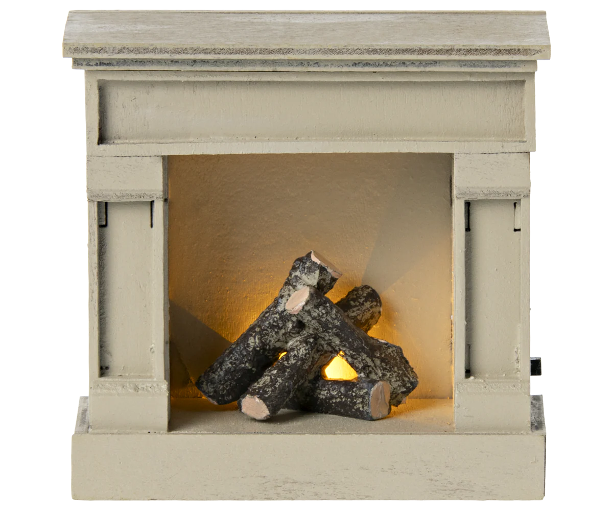 Utilisez cette cheminée en bois pour réchauffer votre maison miniature. Avec son look authentique et une finition vintage et elle sublimera votre décoration. N'oubliez pas de l'éteindre lorsque vos amis se couchent. La batterie peut être remplacée par un adulte.
