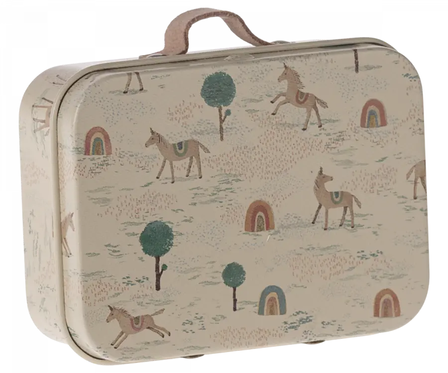 Cette valisette, en métal, avec ses illustrations colorées et jolis détails, peut être utilisée en toutes occasions : cadeaux, rangement de petits objets pour les souris et petits lapins qui veulent emporter leurs affaires.
