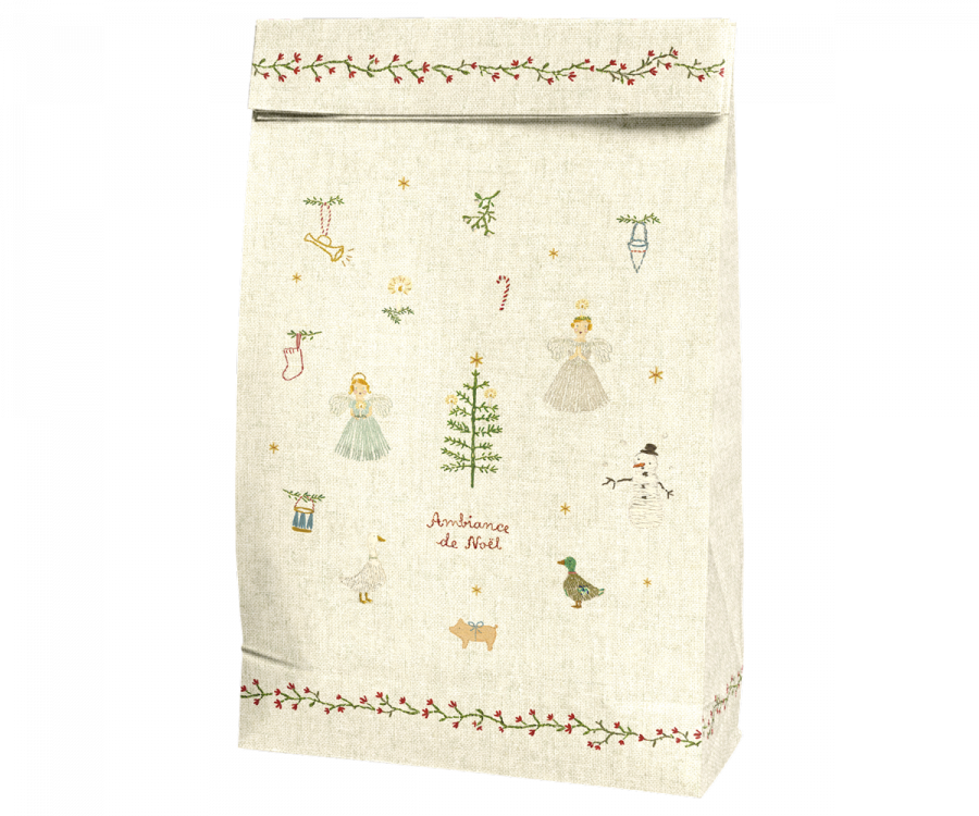 La décoration de ce papier cadeau de Noël a commencé par les broderies personnelles de Dorthe Mailil. Après un processus graphique, le papier cadeau a pris une belle expression et l'atmosphère de Noël est complète.