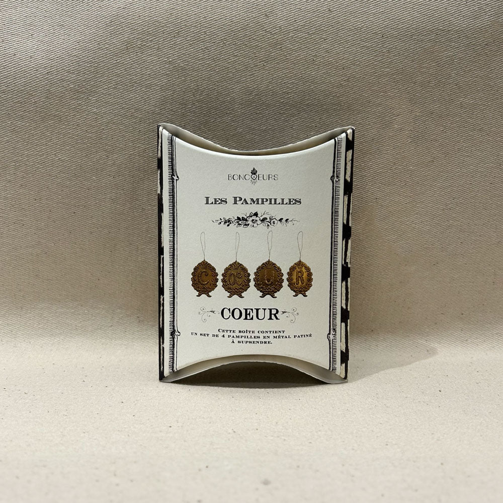Set de 4 pampilles "COEUR" par Boncoeurs. Inspirés des enluminures d'autrefois, les pampilles "COEUR" égayeront vos murs ou votre sapin de Noël