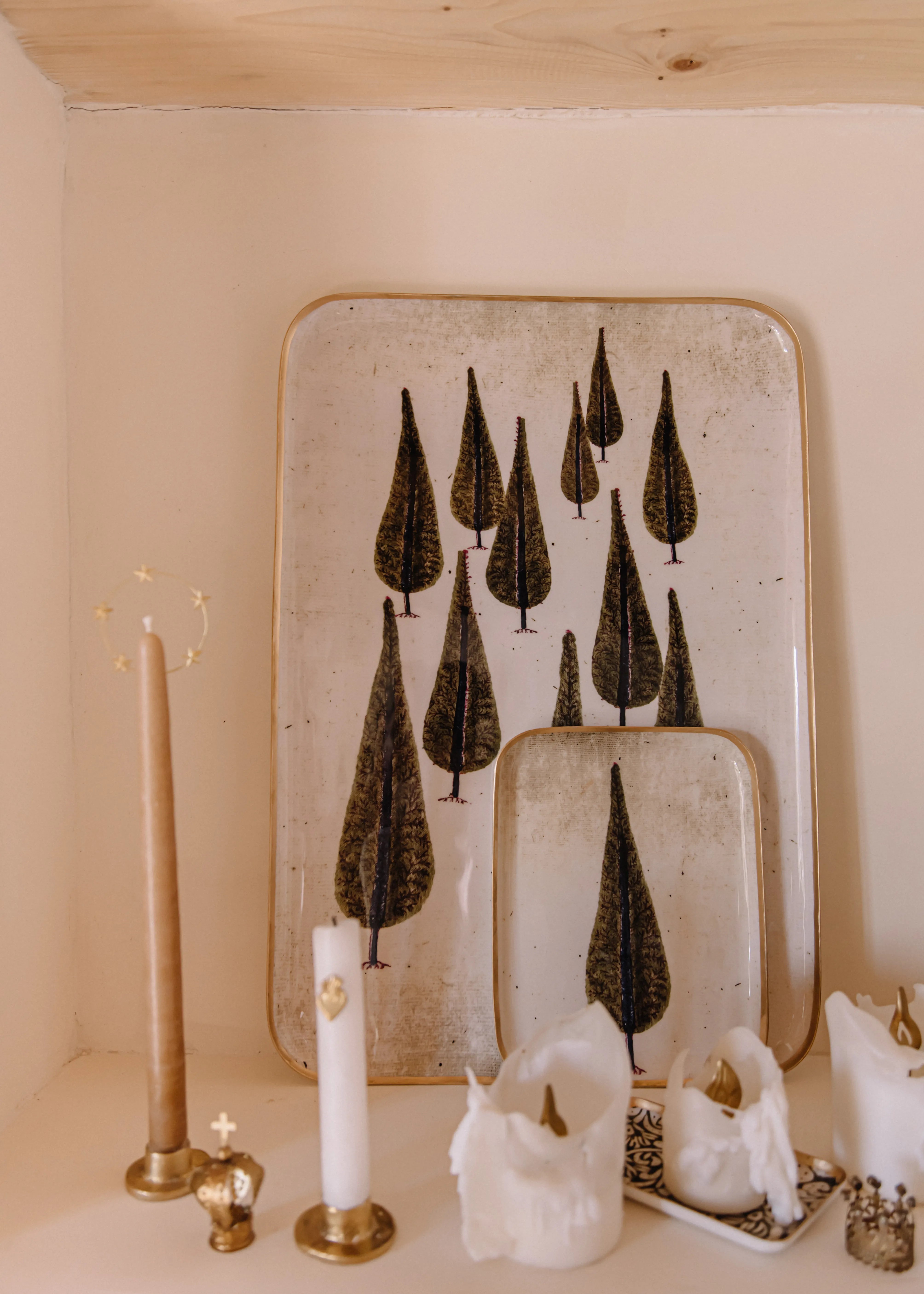 Plateau rectangulaire en aluminium émaillé "Cyprus" Sélectionné pour son motif et sa matière qui lui apporte une brillance et un toucher unique. Léger, il sera votre meilleur allié pour le service.