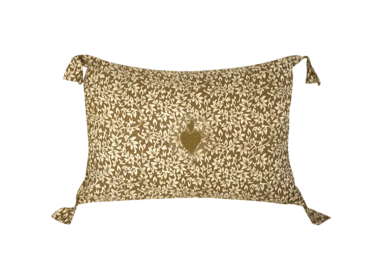 Housse de coussin brodée rameau vieil or