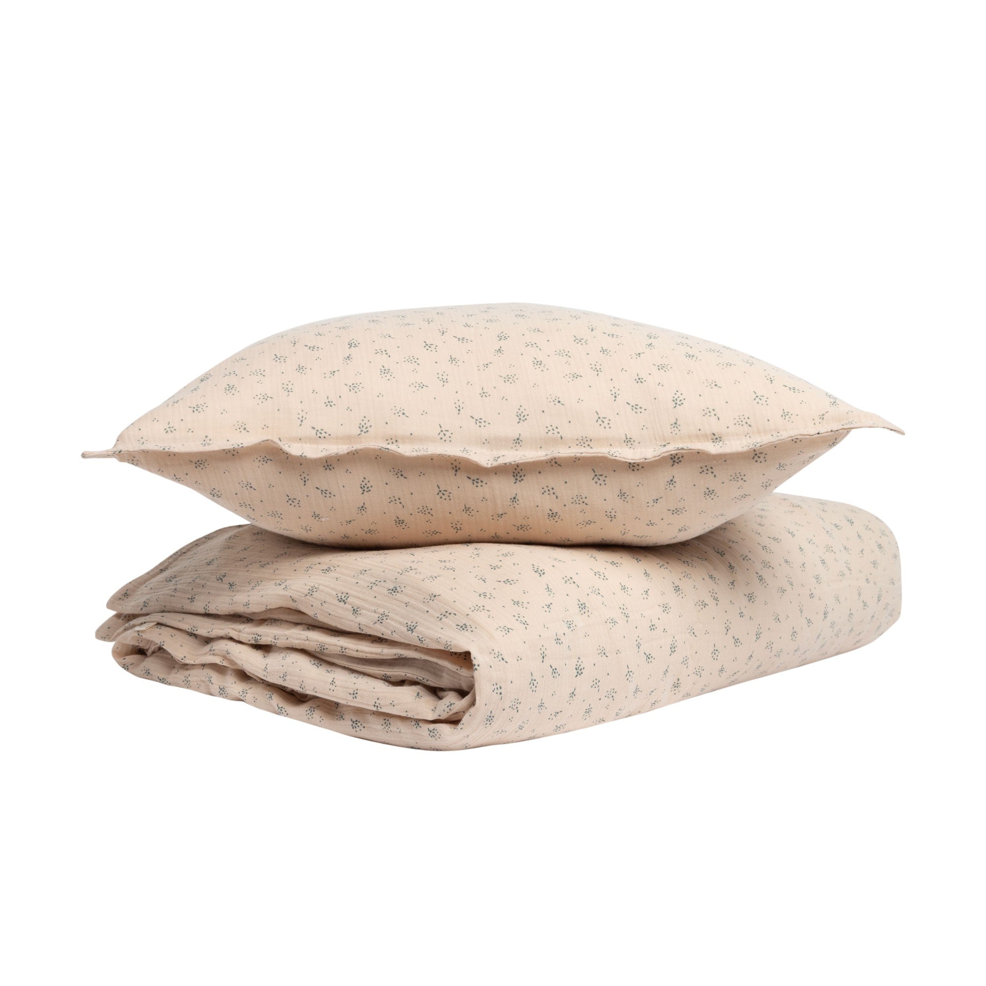 L'imprimé Étincelle se décline dans la nouvelle couleur Argile. La parure de lit est parfaite pour une chambre d'enfants chaleureuse. 100% gaze de coton biologique.
