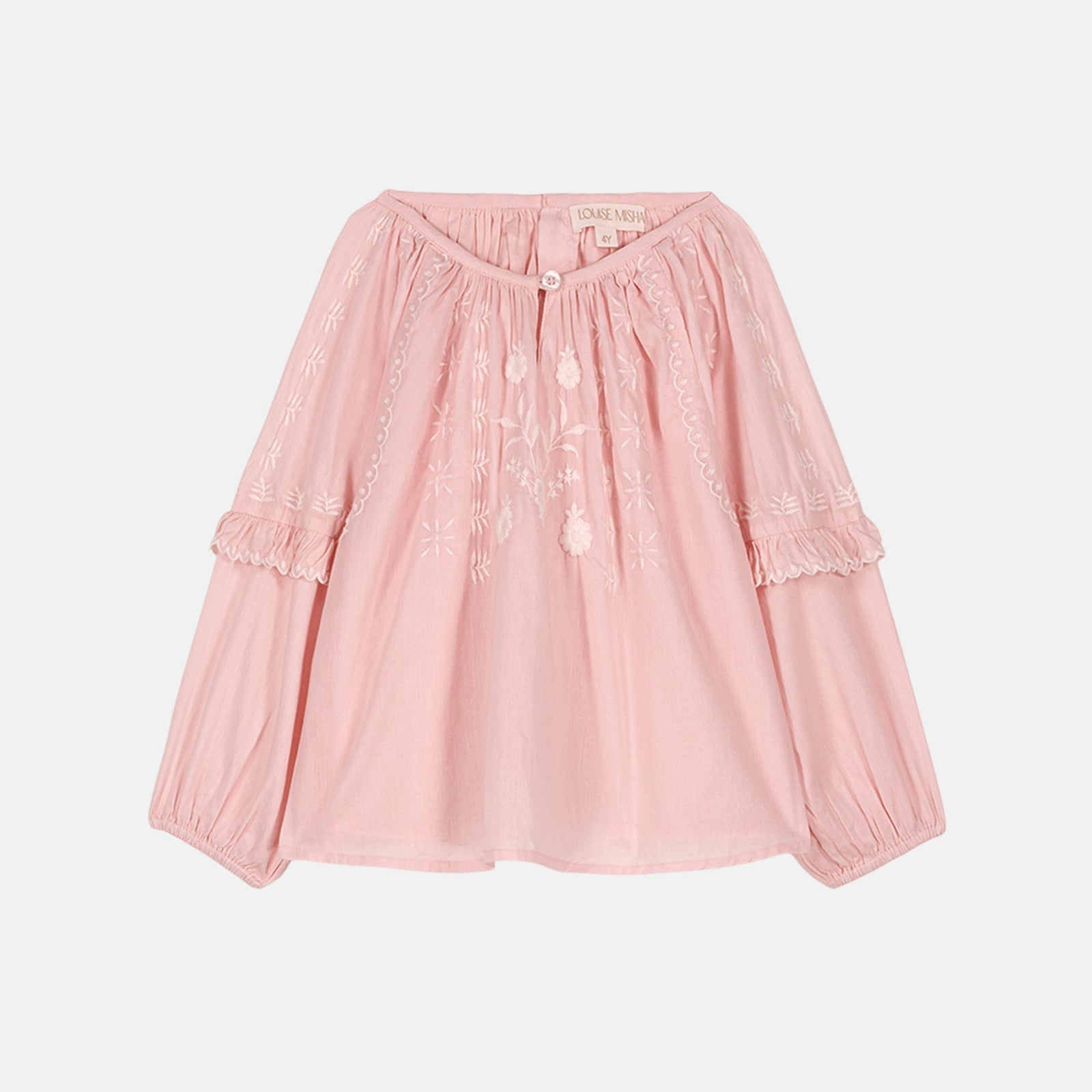 - Manches bouffantes avec détails brodés, détails volantés et festonnés et poignets élastiqués.