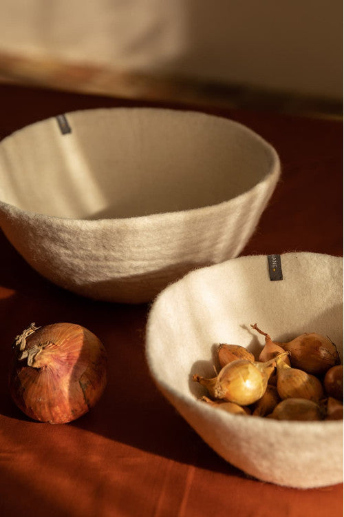 Pour cette nouvelle saison, la CORBEILLE UNIE se décline de la couleur la plus douce à la plus profonde. Façonné à la main par nos artisans du Népal, ce panier de rangement en feutre existe en deux tailles pour vous permettre de le placer au gré de vos envies et de vos besoins. D'entretien facile, vous pouvez l'utiliser pour rassembler bon nombre de vos trésors, mais aussi l'utiliser pour la table comme panière à pain ou corbeille à fruits.