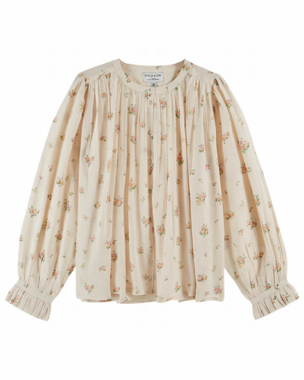 Blouse en coton bio crème rosé parsemé de fleurs. Sa matière est fine et légère.