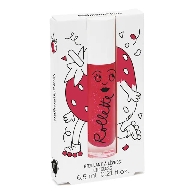 Rollette est un brillant à lèvres incolore, hydratant, vegan, naturel et fruité. nailmatic a créé un soin ludique au parfum fraise : 100% kids, 100% fous rires !