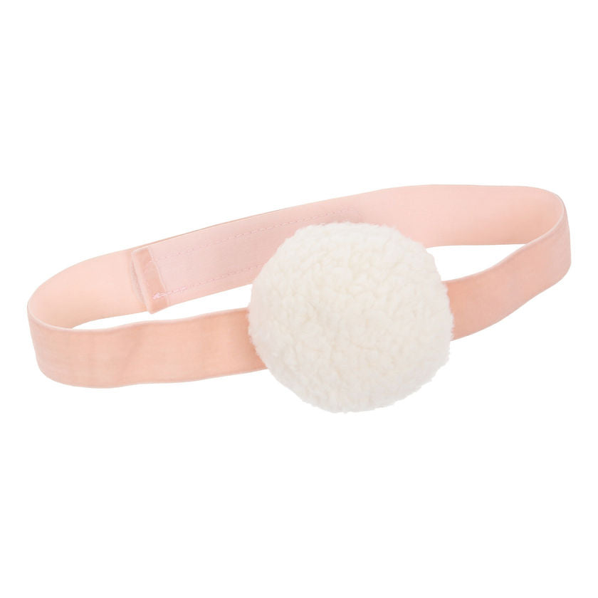 Gaignade élastique en velours de pêche, avec une attache de crochet et de boucle, et un pompom en fil d'ivoire