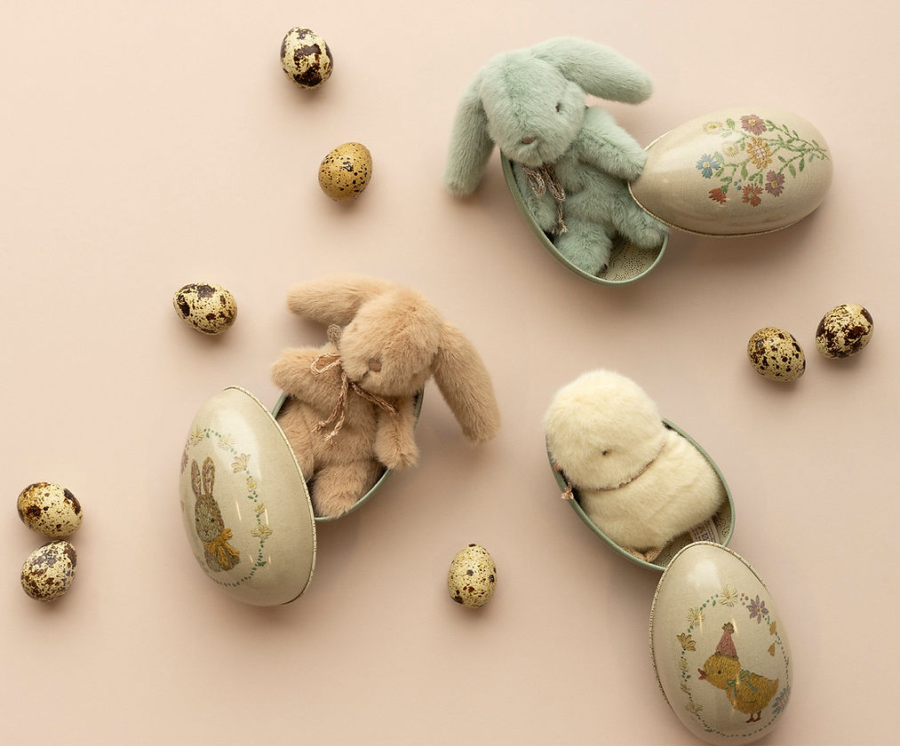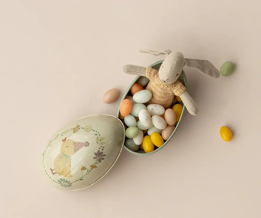 La décoration sur l'oeuf est une broderie personnelle de Dorthe Mailil,transformée en une magnifique impression. Cachez une surprise dans l'œuf pour la période de Pâques. Conforme à la réglementation de l'UE sur les denrées alimentaires.