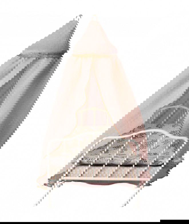 Délicate canopée de lit jouet miniature, adaptée pour les lits de maison de poupee. Elle décorera en un clin d'oeil la chambre de vos petites souris Maileg.