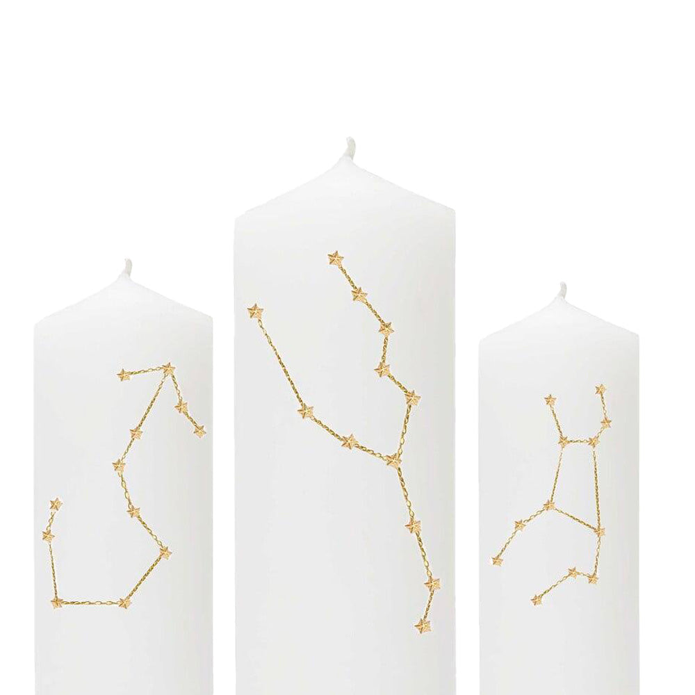 Façon DIY, plantez les étoiles dans votre bougie et reliez les avec la chaine afin de former votre signe astrologique.