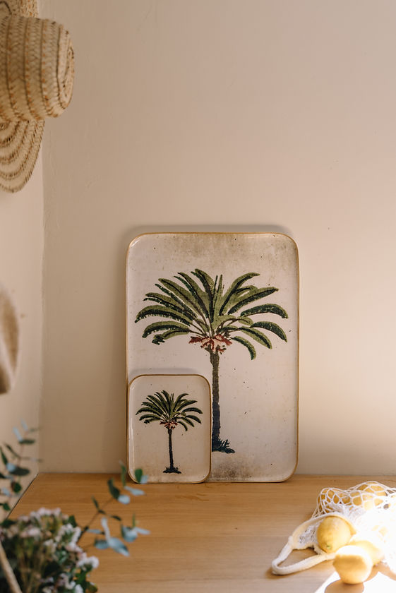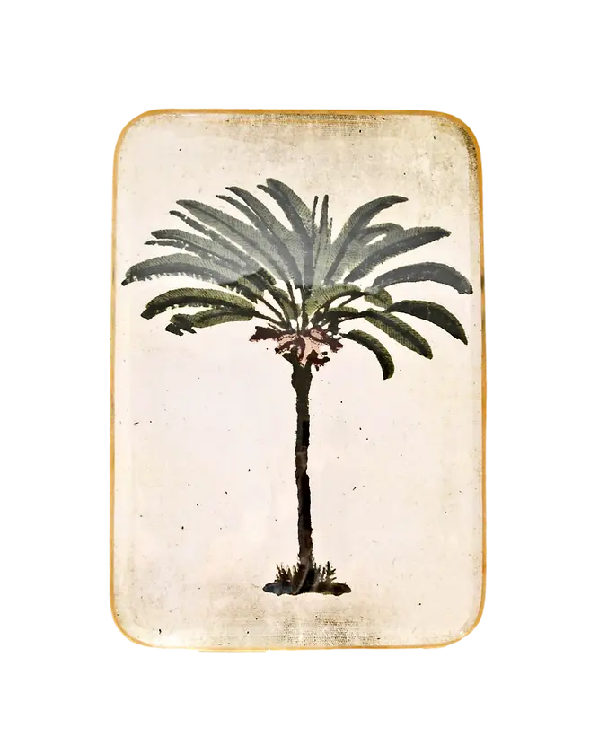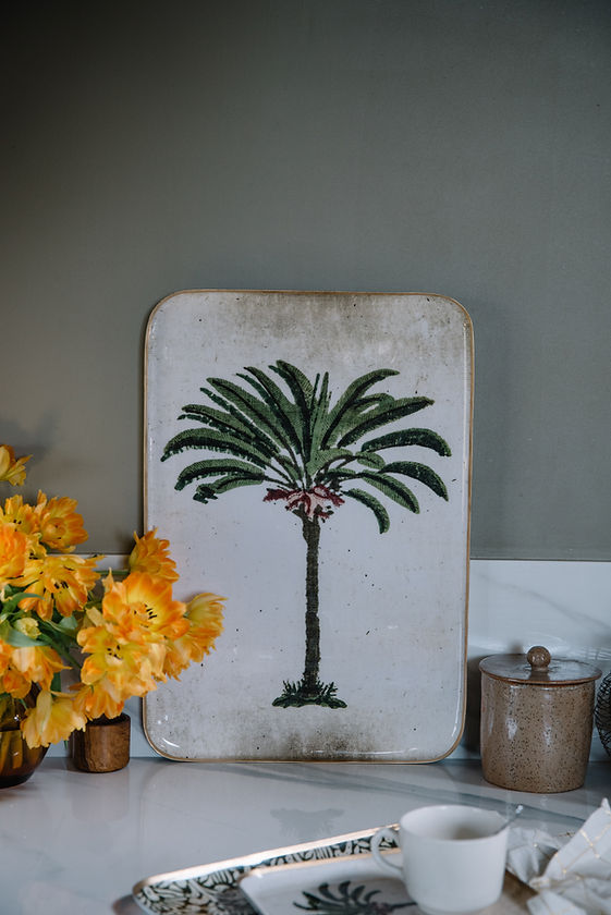 Grand plateau réception "Palmier" en aluminium émaillé par Boncoeurs.