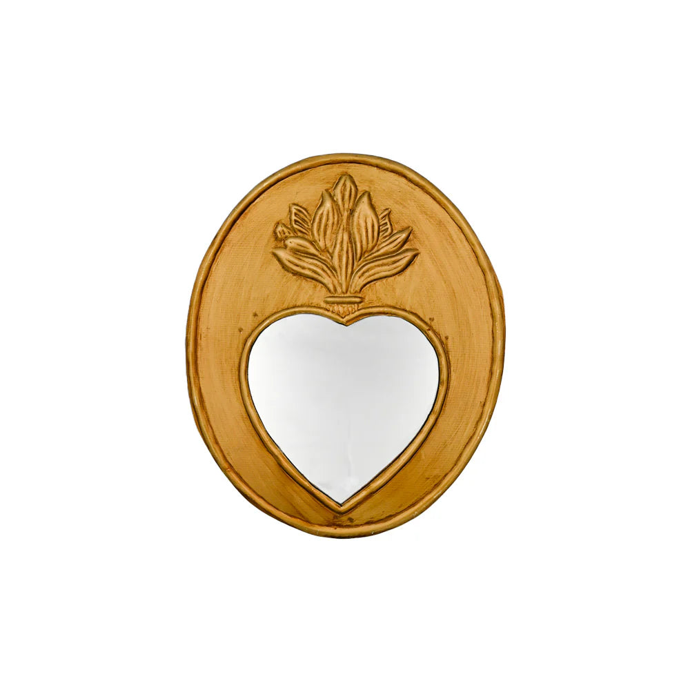 Miroir Idylle à suspendre. Notre fameux mur d'ex-votos à reproduire chez vous. Accumulez coeur ex-votos, ornements et miroir pour une composition murale réussie.