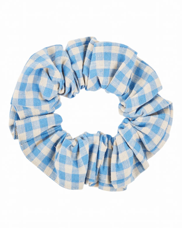Chouchou en coton vichy blanc cassé et bleu. À porter dans les cheveux ou en bracelet autour du poignet, ce chouchou s'accorde parfaitement avec la robe ou la blouse que nous vous proposons dans le même imprimé.