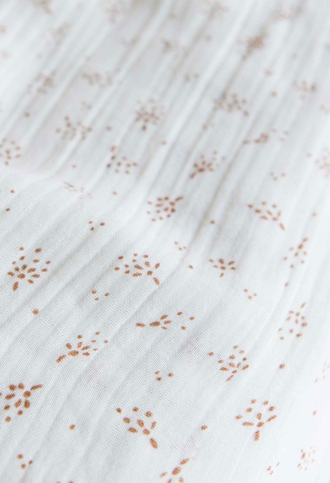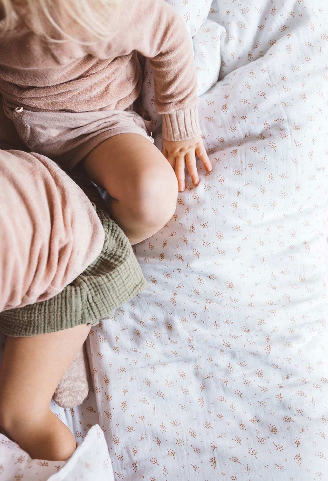 L'imprimé Étincelle se décline dans la nouvelle couleur Miel. La parure de lit est parfaite pour une chambre d'enfants chaleureuse. 100% gaze de coton biologique.