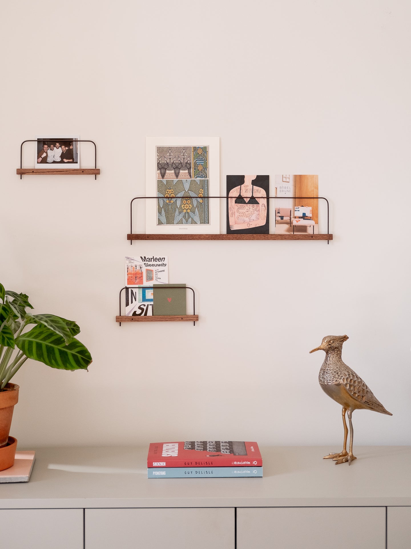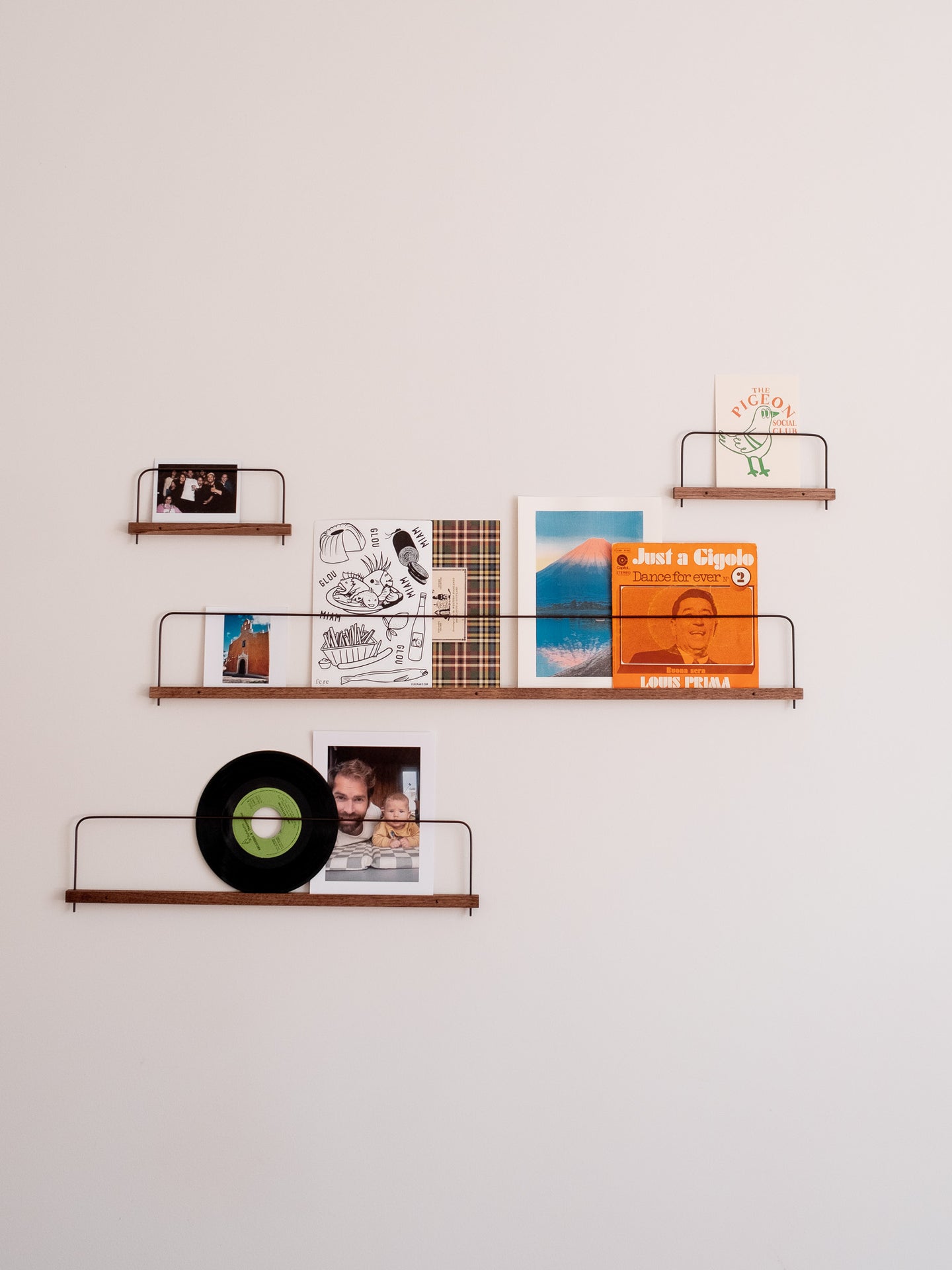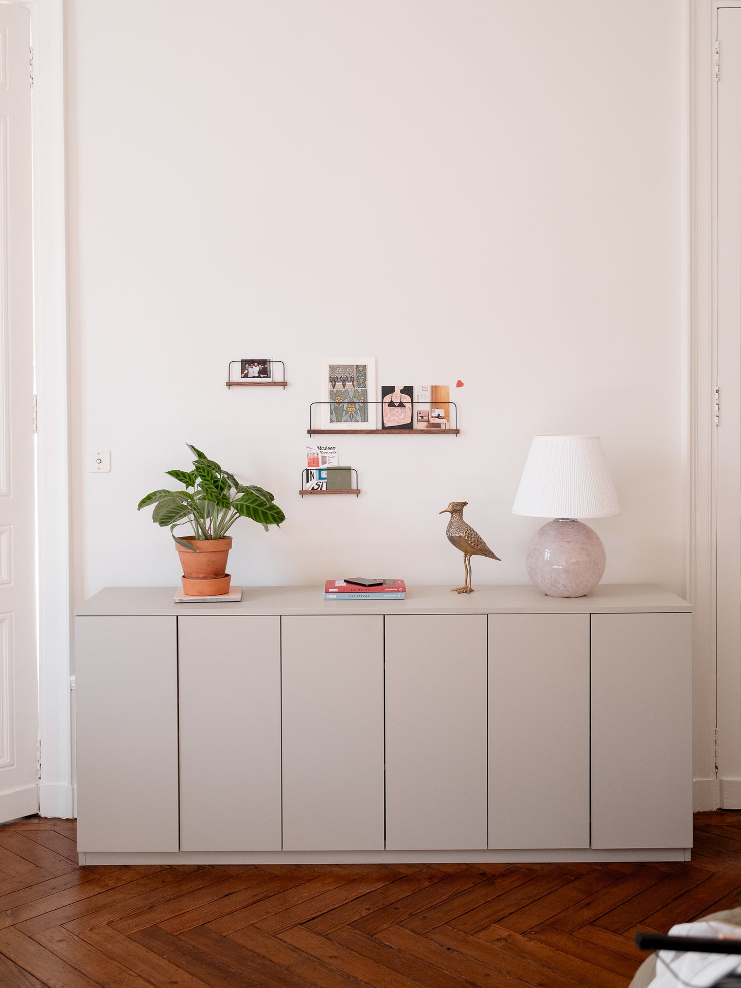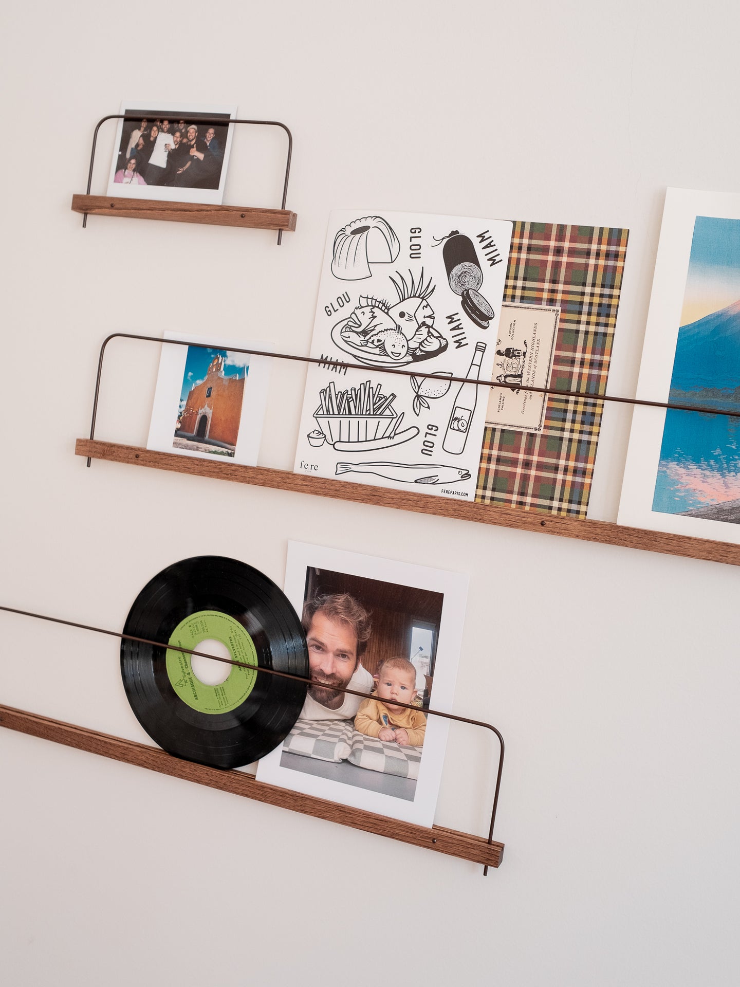 Une alliance subtile de matières et de tons naturels pour exposer photos, illustrations et souvenirs avec élégance et simplicité.